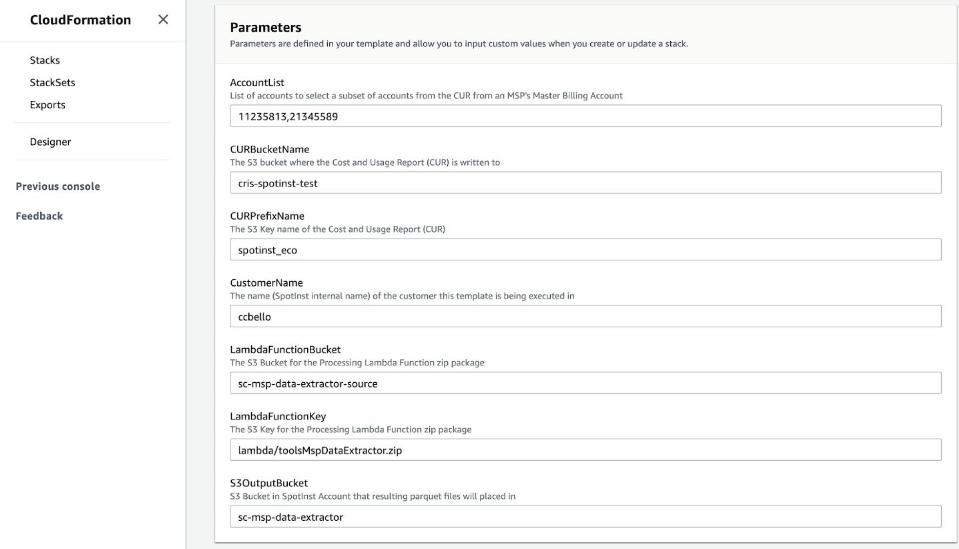 - CURBucketName: Set this to the name of the S3 bucket that you chose in the previous steps for Cost and Usage Reports to write to.
